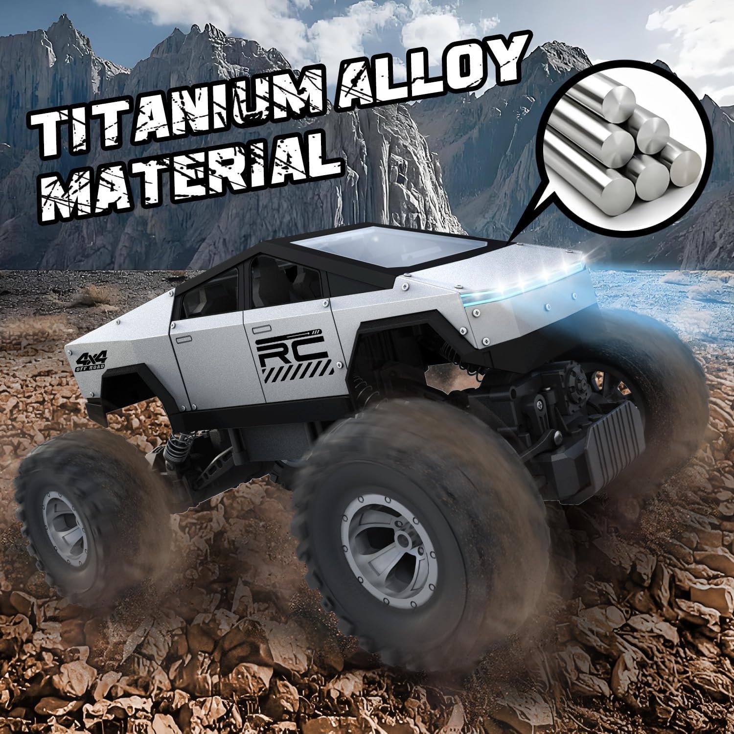 【Fast and Safe】Large RC Monster Truck has a powerful motor and can climb 45° slopes with a speed of up to 20km/h. 4 large non-slip silicone tires make the rc crawler easy to walk on all kinds of ground, suitable for indoor and outdoor play. The anti-collision design protects the safety of remote control cars and children.