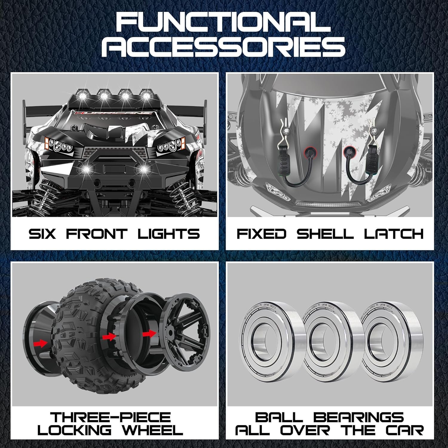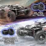 Powerful 390 brushed motor: Compared to brushless, it is not a brute force slam, there is no brushless delay, the throttle linearity is better, and it is more conducive to beginners mastering RC skills. Of course, the customized 390 motor is equally impressive in terms of speed, reaching speeds of up to 40 km/h in good road conditions. This is very enjoyable for the operator.