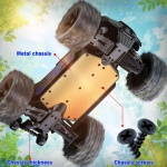 The fully assembled 1/14 scale RC Truck features a precision laser-etchedaluminum chassis, reinforced with a durable metal center body support. This robust design delivers virtually unstoppable strength, ensuring superior performance and durability for intense off-road adventures. Built to dominate!
