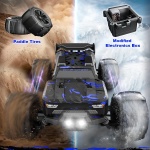 Extreme Speed & Unstoppable Durability: Ready-to-Run 4×4 monster truck hits 40 MPH (60 km/h) with 2S power! Rugged steel differentials, metal gearbox, and universal drive shaft withstand brutal bashing. Laser-cut aluminum chassis + composite bracing deliver 50% longer lifespan versus competitors. Charge once, play longer: Dual batteries provide 60 minutes of adrenaline-fueled action.