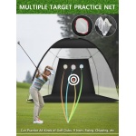 【Multiple Target Practice Net】Our golf net is large enough to handle most drives at a distance. We set up extra three targets for hitting. Whether you are an entry-level player, a beginner, or an advanced player, one big target can practice our basic skills. Three higher small targets can make our skills more exquisite and target hitting more accurately. This golf net will help you to practice the strength and accuracy of chipping, driving, swings safely in the backyard, indoor or outdoor.