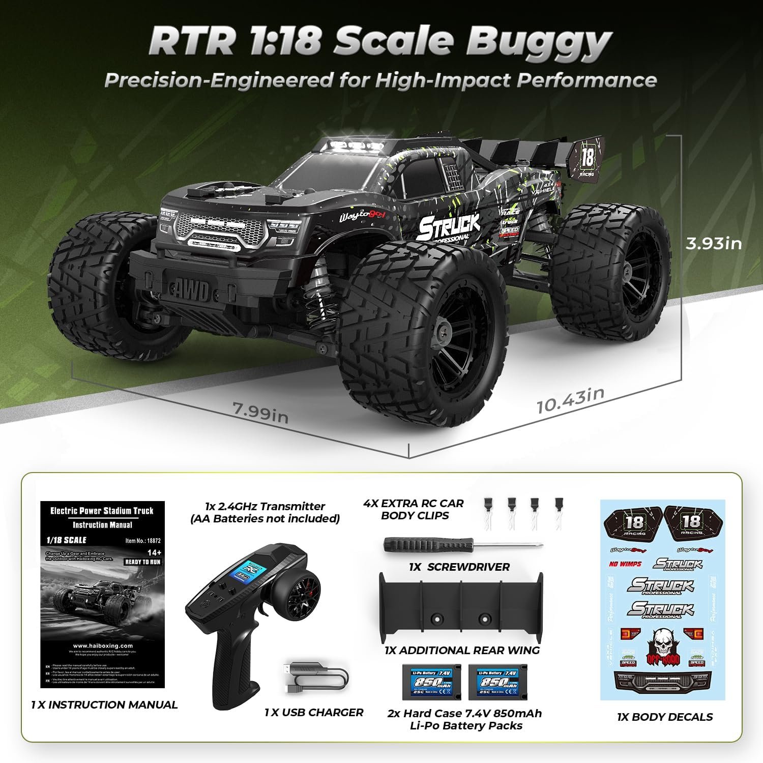 HAIBOXING 1:18 RC Car 18872 New Model RC Truck 4X4 Off-Road, 2.4GHz Remote