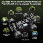 Equipped with front and rear differentials and metal drive shafts, the car uses strong PA materials and a reinforced design for better impact resistance. Durable tires and a collision-resistant structure make it ideal for beginners.