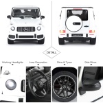 OFFICIAL AUTHORIZATION BY MERCEDES-AMG: 1/14 remote controlled Mercedes- AMG G63 vehicle; off-road model measures in 36.6 x 13.7 x 13.6 cm; available in white.