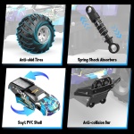 Easy to control: The mini remote control is simple and great for kids, they can quickly learn to control, while the sturdy chassis and bumper design make the remote control monster truck more impact-resistant, and the high-quality shell is soft and collision-resistant, so that children don’t have to worry about collisions when challenging intense driving.