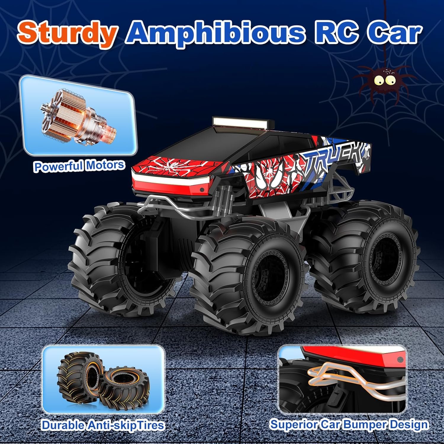 Perfect Birthday & Christmas Gifts for Kids –Amphibious remote control car, Whether your child is a beginner or an RC cars enthusiast, this rc truck is an ideal gift. Great as a Birthday gift or Christmas gift, this remote control car brings endless fun to boys and girls ages 6-12. The monster truck toys used on all-terrains, provide kids hours of outdoor fun.A must-have RC car for boys, girls, and teens who love speed, action, and exploration