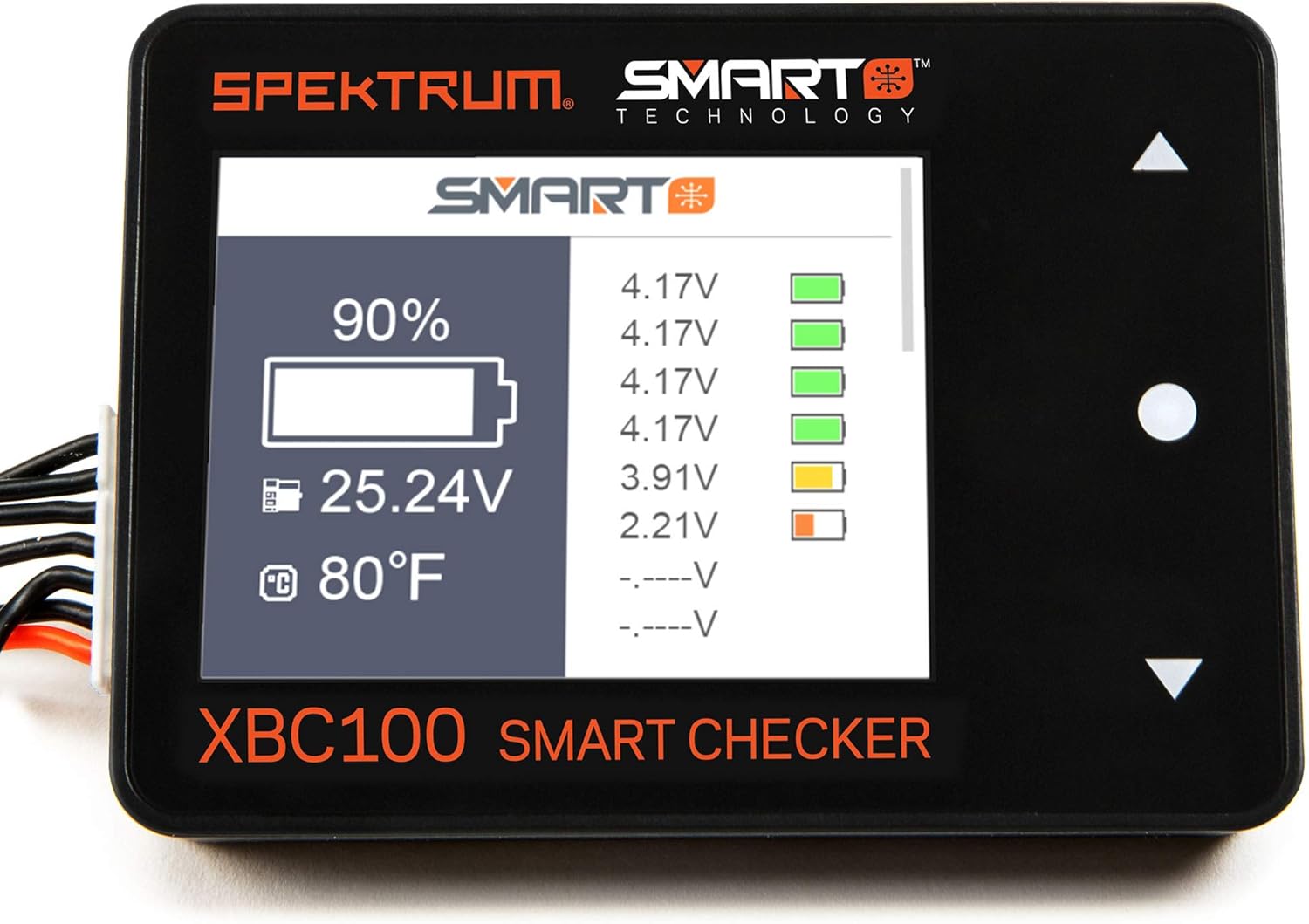 Battery checker with built-in cell balancing, integrated servo tester and driver, and Spektrum Smart battery connectivity