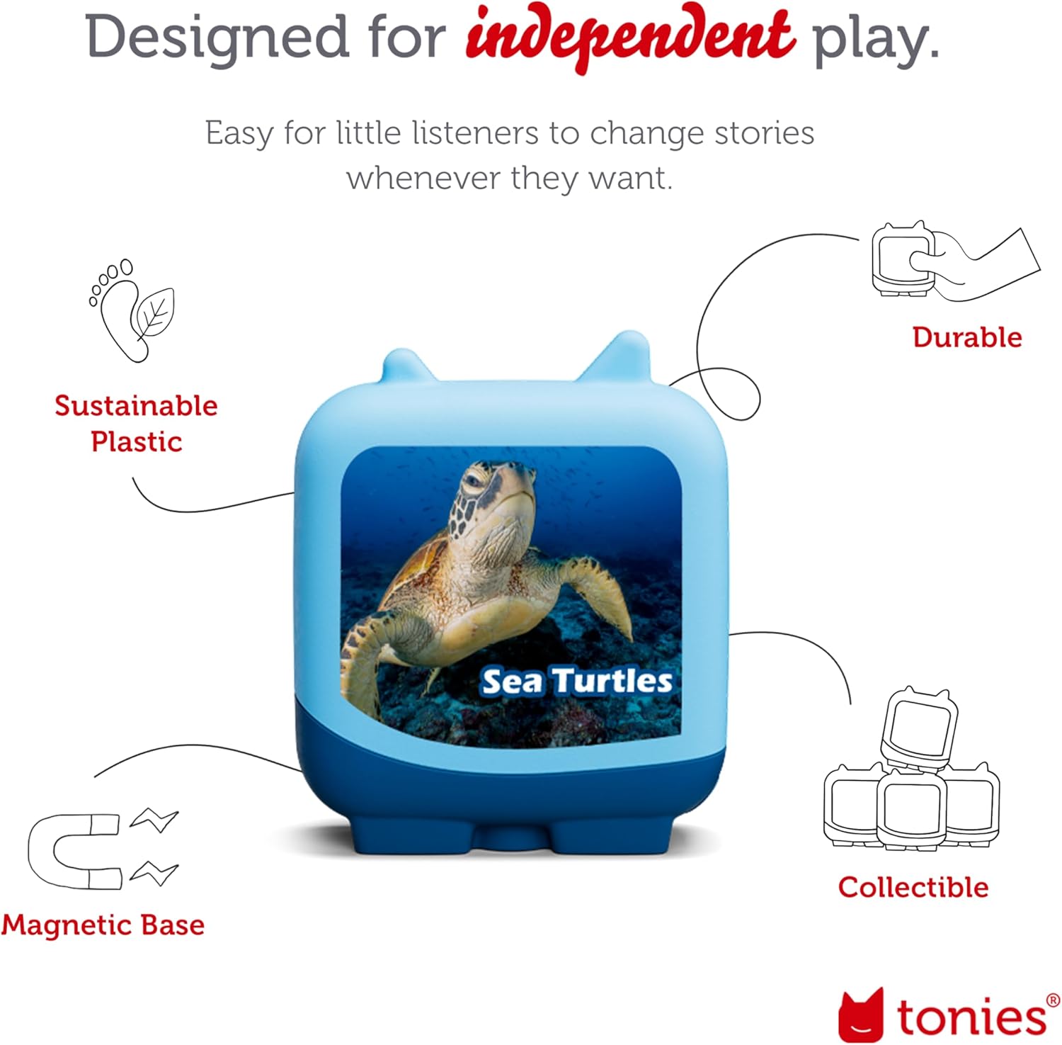 Tonies is designed for the way kids play with intuitive controls that young kids can use independently. Our growing selection of collectable Tonies – from Disney to Sesame Street to PAW Patrol – provides a large library of stories, songs, and educational content for any occasion.