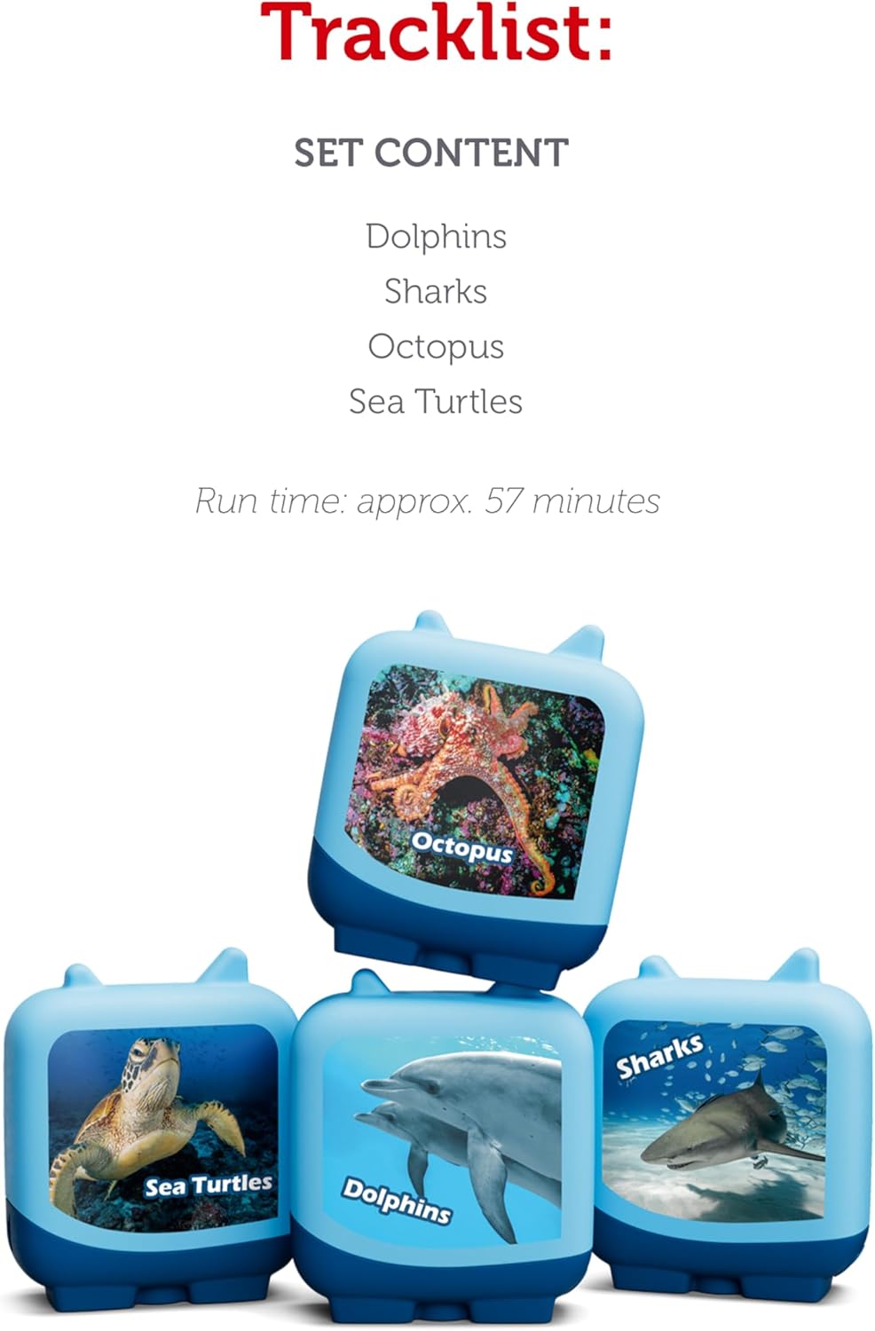 Tracklist: Audiobooks (1 for each Tonie): Dolphins, Sharks, Octopus, Sea Turtles.